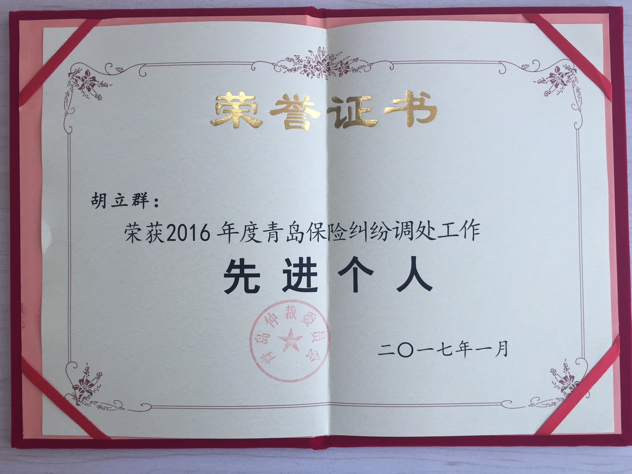 在2016年度青島市保險(xiǎn)糾紛調(diào)處工作中,長(zhǎng)城人壽青島分公司被青島市仲裁委員會(huì)評(píng)選為“先進(jìn)單位”,運(yùn)營(yíng)服務(wù)部經(jīng)理胡立群同時(shí)榮獲“先進(jìn)個(gè)人”榮譽(yù)稱號(hào)。